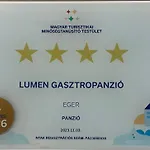 De kamers van Lumen Gasztropanzio Bed and Breakfast Eger zijn uitgerust met een persoonlijk kluisje, een flatscreen TV met satelliet zenders en rookmelders, en sommige hebben ook een privébadkamer. Gasten kunnen gebruikmaken van een minibar en ontspannen met een TV en flat-screen TV. De badkamers hebben een apart toilet en een douche, en zijn ook voorzien van een haardroger en handdoeken.